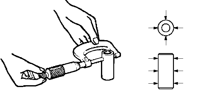2. Measure the inside diameter of the connecting rod small end. If the fitting interference between the small end and pin does not conform to the specified value, the connecting rod must be replaced.