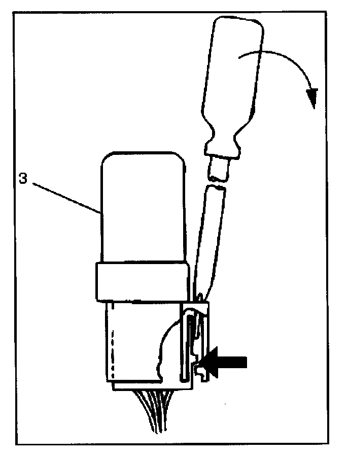 3. Insert a small screwdriver into the catch slot on the forward side of the fuel pump relay.