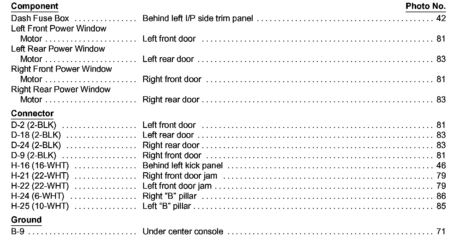 Power Windows Component Location Index Image 120-2:
