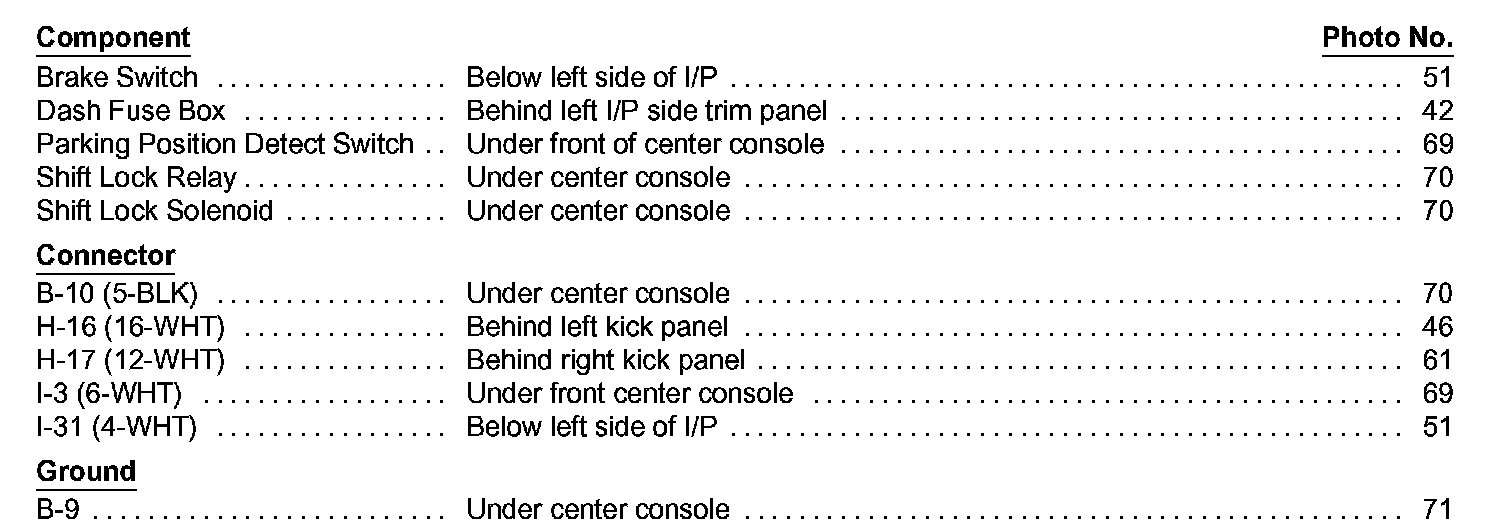 Shift Interlock System Component Location Index Image 138-1: