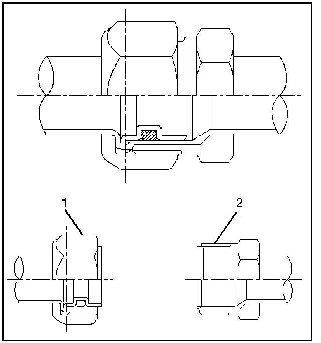 O-rings (2) must be fitted in the groove (1) of refrigerant line.