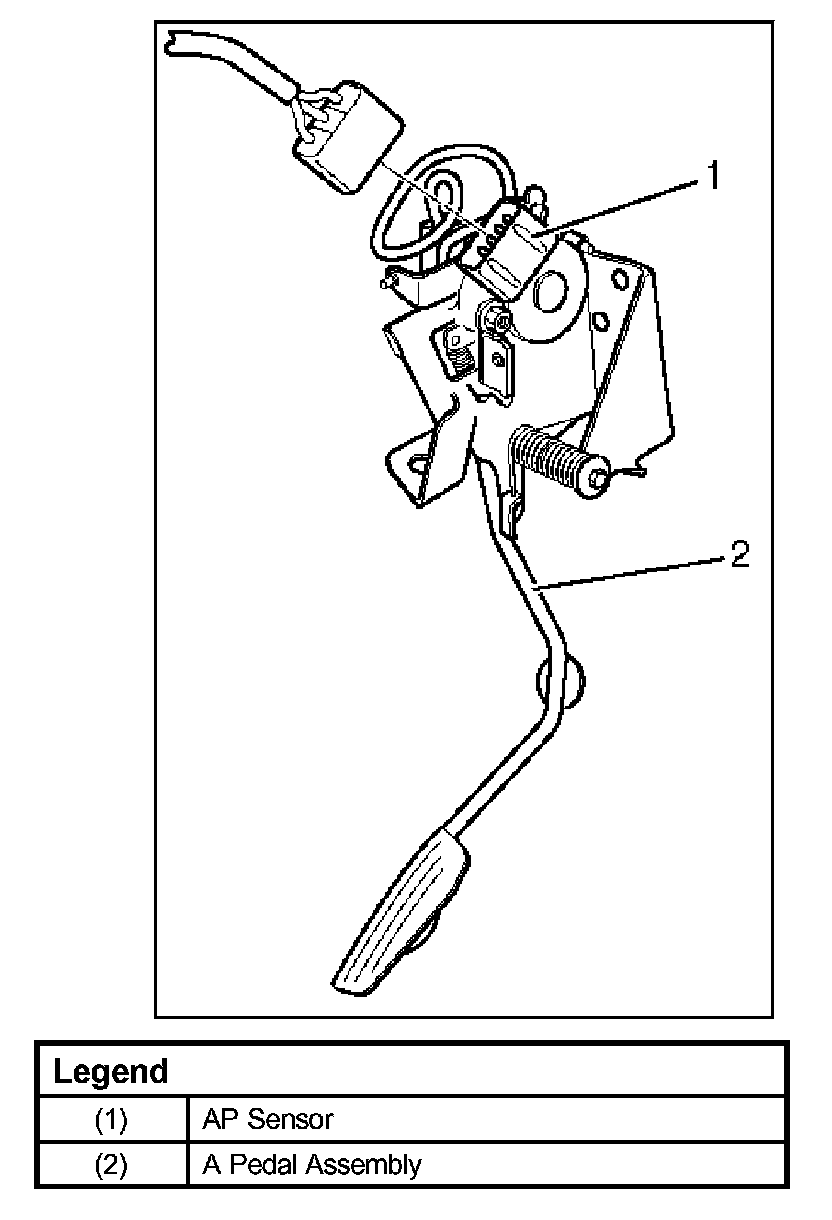 Accelerator Position Sensor ReplacementCAUTION: Remove the Accelerator (A) pedal assembly as a unit to have it serviced. Do not remove the Accelerator Position (AP) sensor on the A pedal. If the AP sensor is removed for emergency cause, refer to following items as necessary.