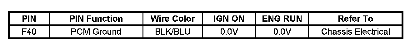 PCM Pinout Table, 80 - Way Blue Connector - Row "F20 - 40" Part 1: