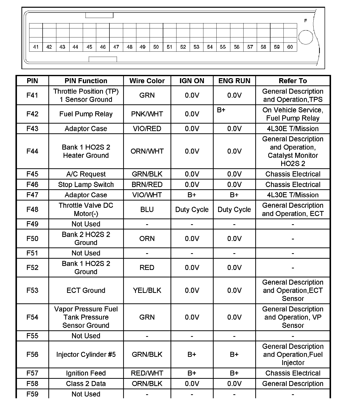 PCM Pinout Table, 80-Way Blue Connector - Row F41 - 60 Part 2: