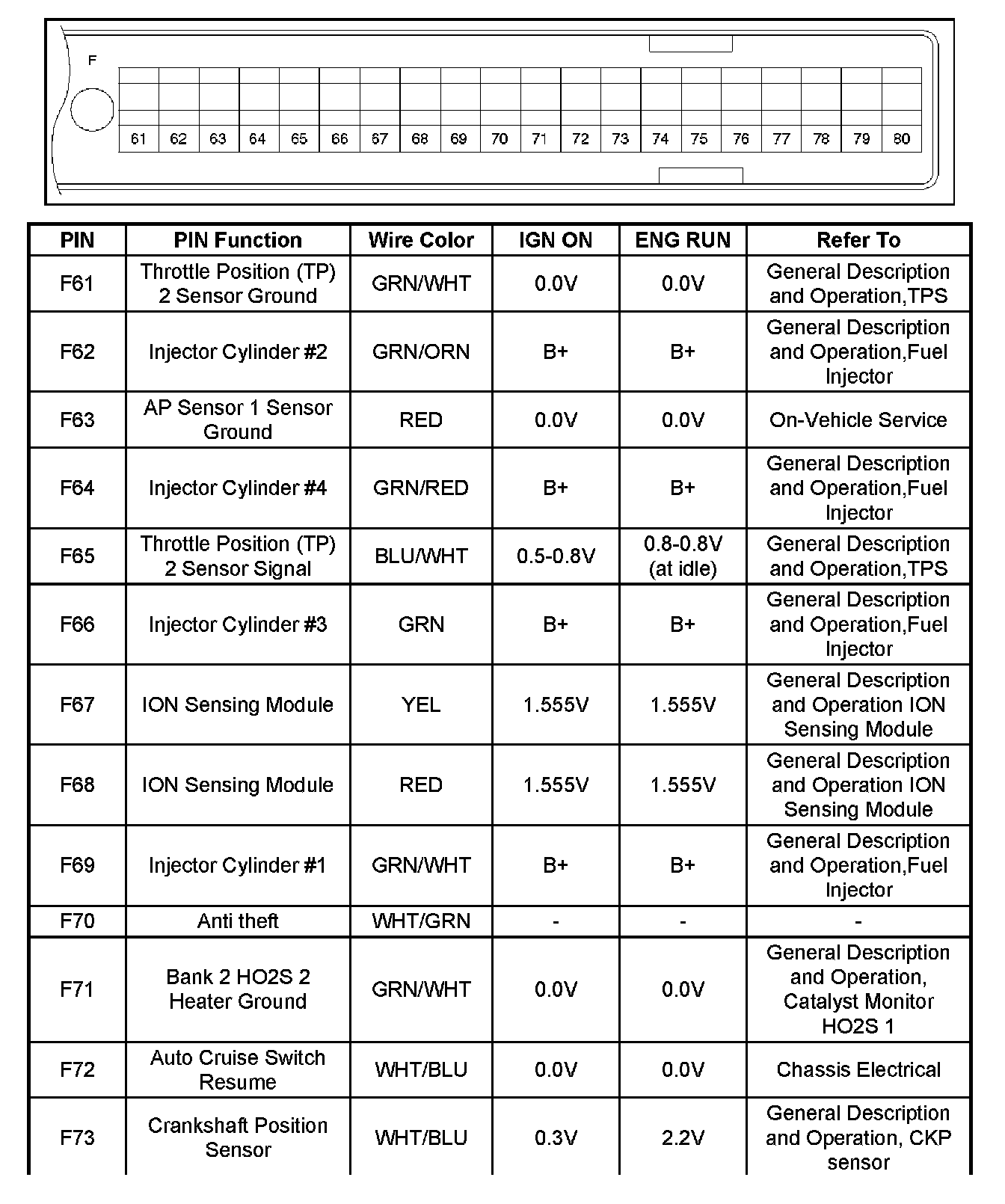 PCM Pinout Table, 80-Way Blue Connector - Row F61 - 80 Part 2: