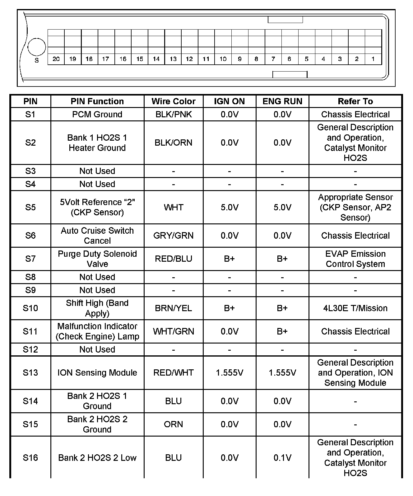 PCM Pinout Table, 80-Way Red Connector - Row S1 - 20 Part 1: