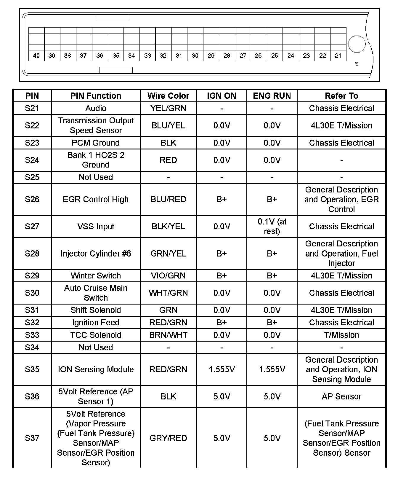 PCM Pinout Table, 80-Way Red Connector - Row S21 - 40 Part 2: