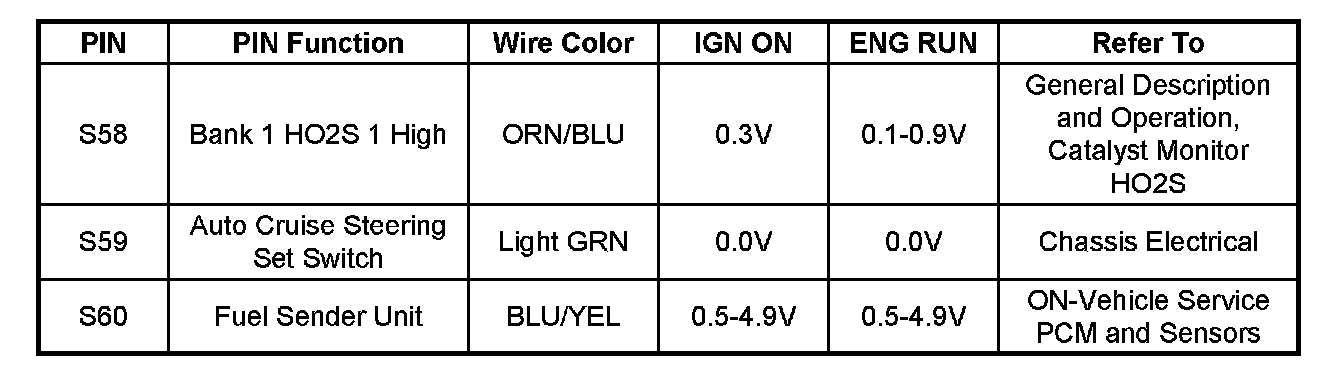 PCM Pinout Table, 80-Way Red Connector - Row S41 - 60 Part 1: