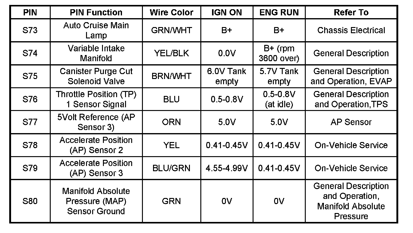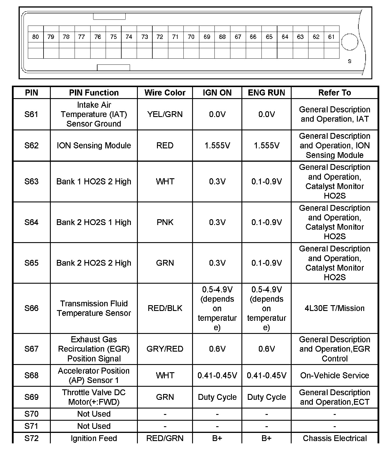 PCM Pinout Table, 80-Way Red Connector - Row S61 - 80 Part 2: