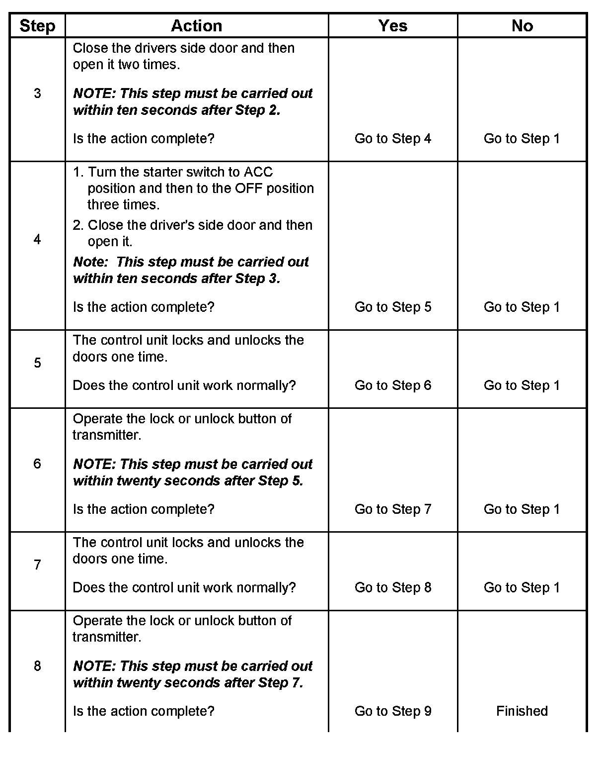 This procedure erases all registered ID codes and registers a new received ID code instead.