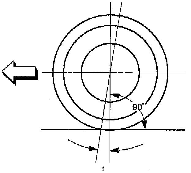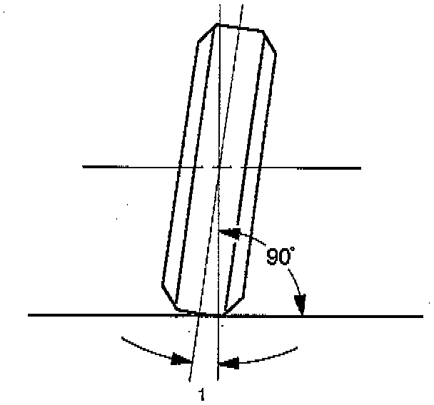 Caster (1) is the vertical tilting of the wheel axis either forward or backward (when viewed from the side of the vehicle). A backward tilt is positive (+) and a forward tilt is negative (-). On the short and long arm type suspension, you cannot see a caster angle without a special instrument, but if you look straight down from the top of the upper control arm to the ground, the ball joints do not line up (fore and aft) when a caster angle other than 0 degree is present. With a positive angle, the lower ball joint would be slightly ahead (toward the front of the vehicle) of the upper ball joint center line.