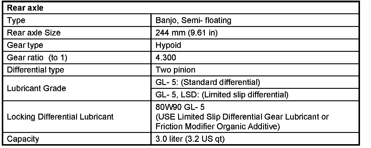 FRONT DIFFERENTIALGENERAL SPECIFICATIONS