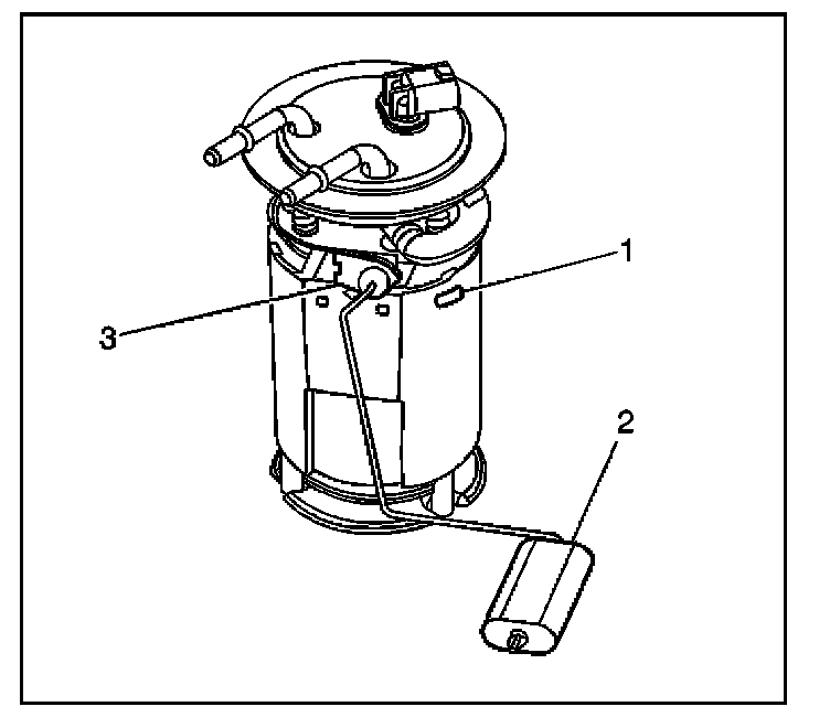 6. Squeeze the locking tangs and remove the fuel level sensor (3).