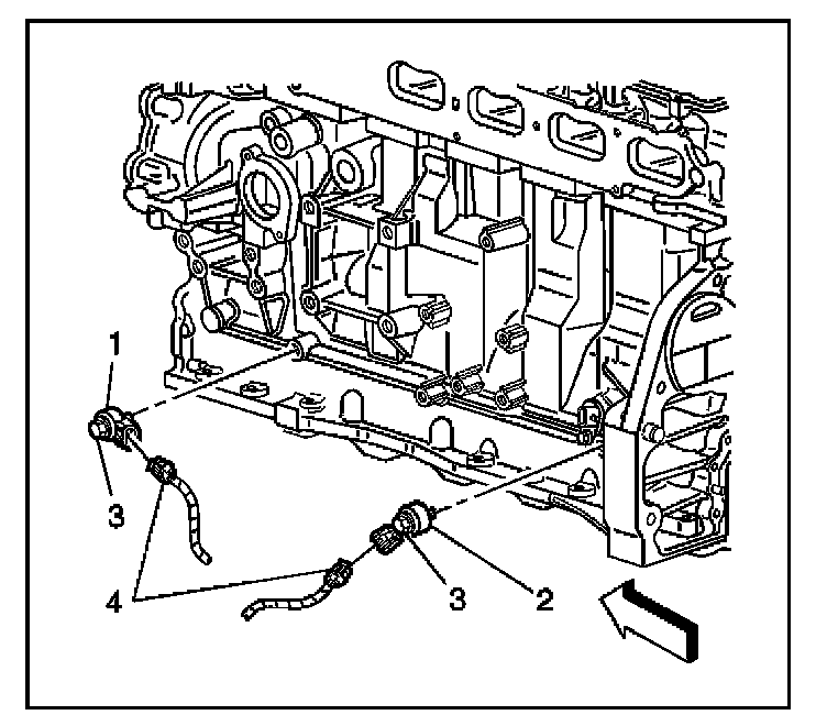 3. Remove the knock sensor retaining bolt (3).