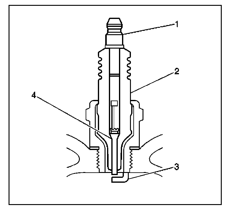 - Measure the gap between the center electrode (4) and the side electrode (3) terminals. An excessively wide electrode gap can prevent correct spark plug operation.