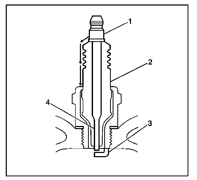 - Inspect for the correct spark plug torque.Insufficient torque can prevent correct spark plug operation. An over torqued spark plug, causes the insulator (2) to crack.