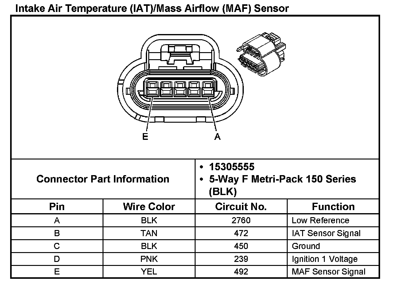 Intake Air Temperature (IAT)/Mass Airflow (MAF) Sensor: