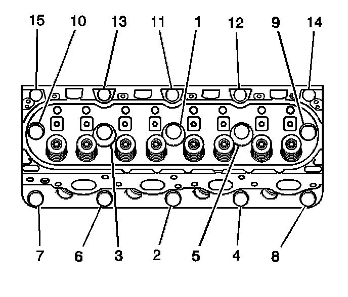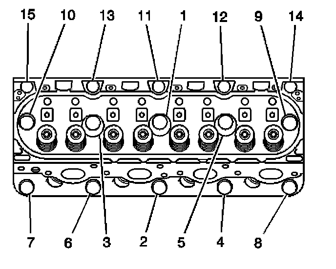 Exhaust Manifold Bolt. Alternate from side-to-side, and work toward the outside bolts.
