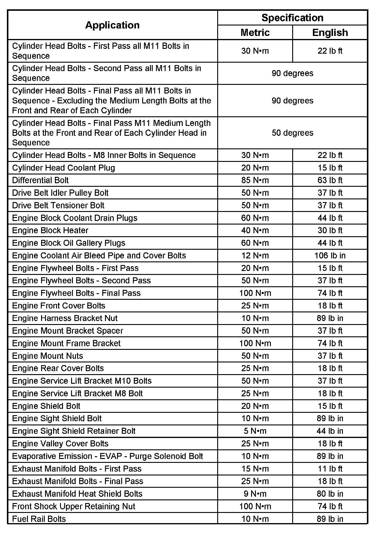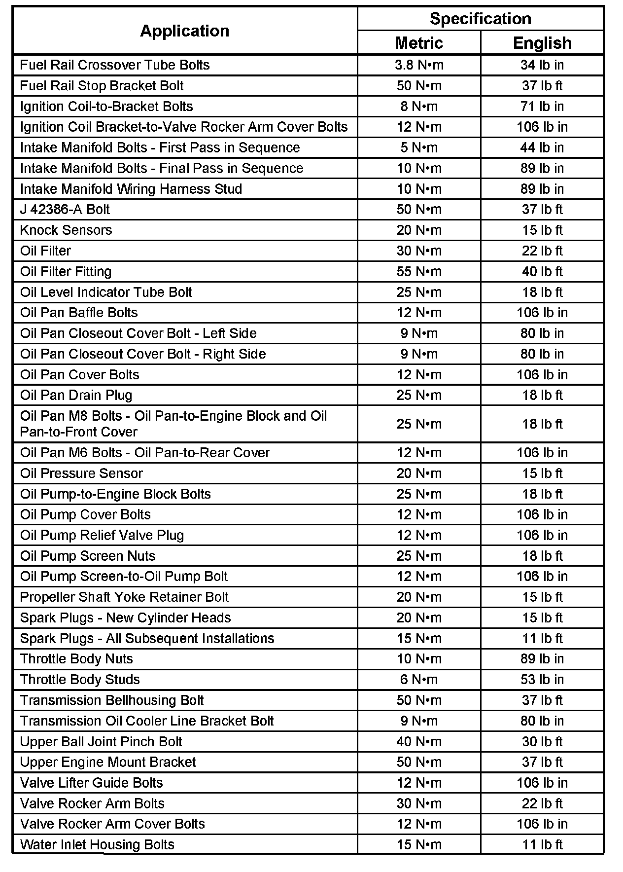 Fastener Tightening Specifications