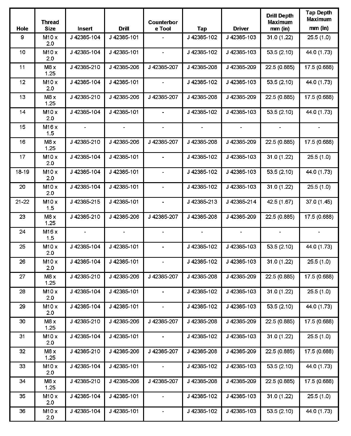 Thread Repair Specifications