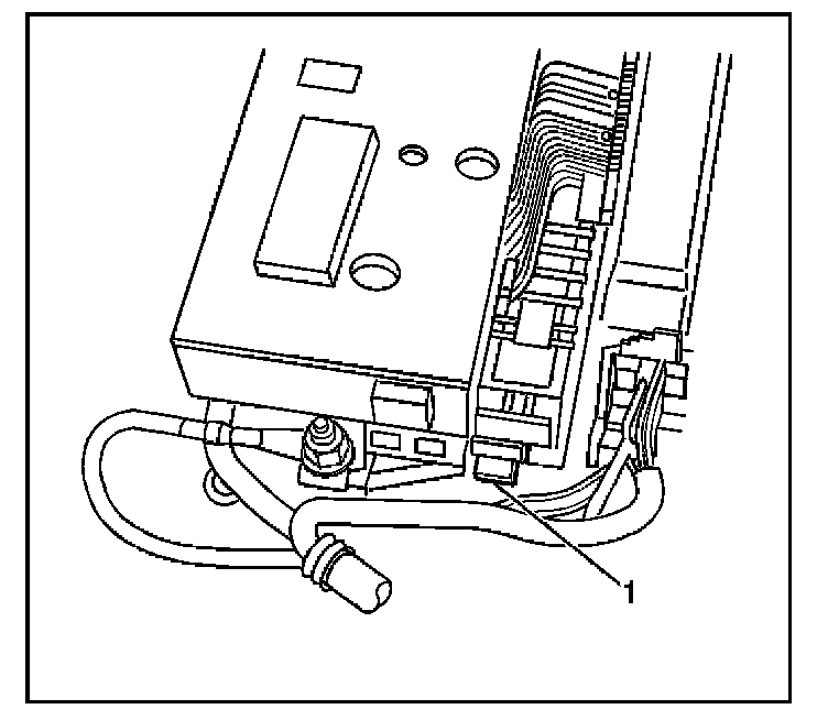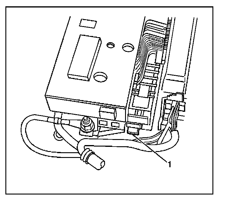 6. Engauge the sliding latch to the BCM, by sliding the latch outboard until the locking tab (1) is fully seated.