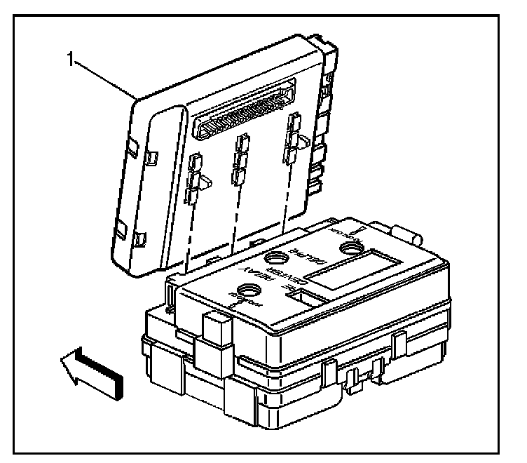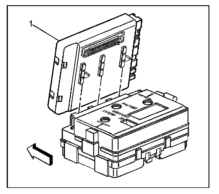 1. Index the slots on the BCM (1) to the rear electrical center.