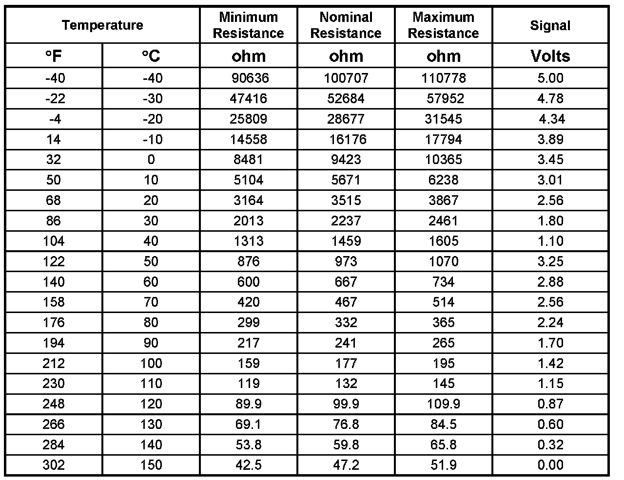 Transmission Fluid Temperature (TFT) Sensor Specifications: