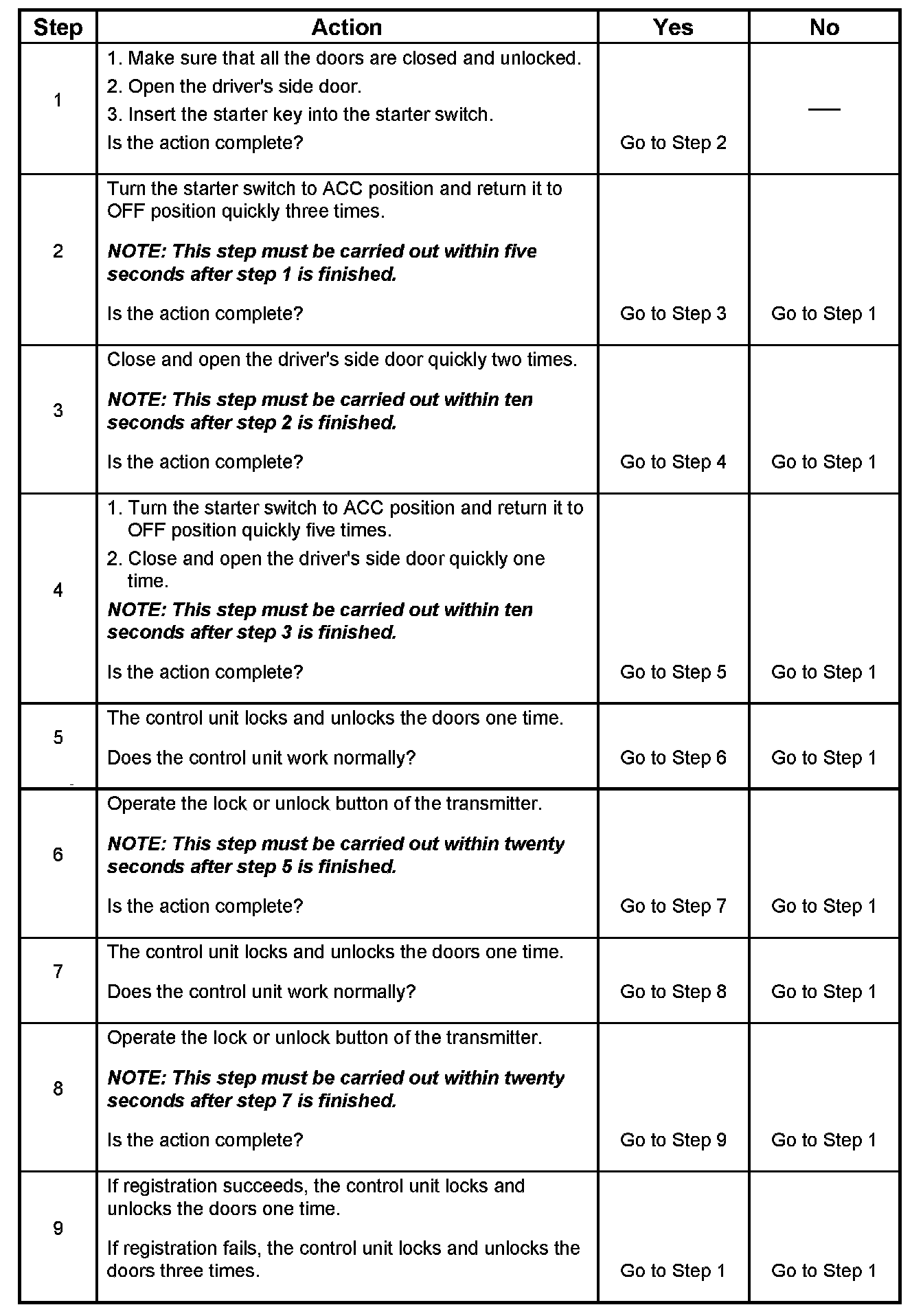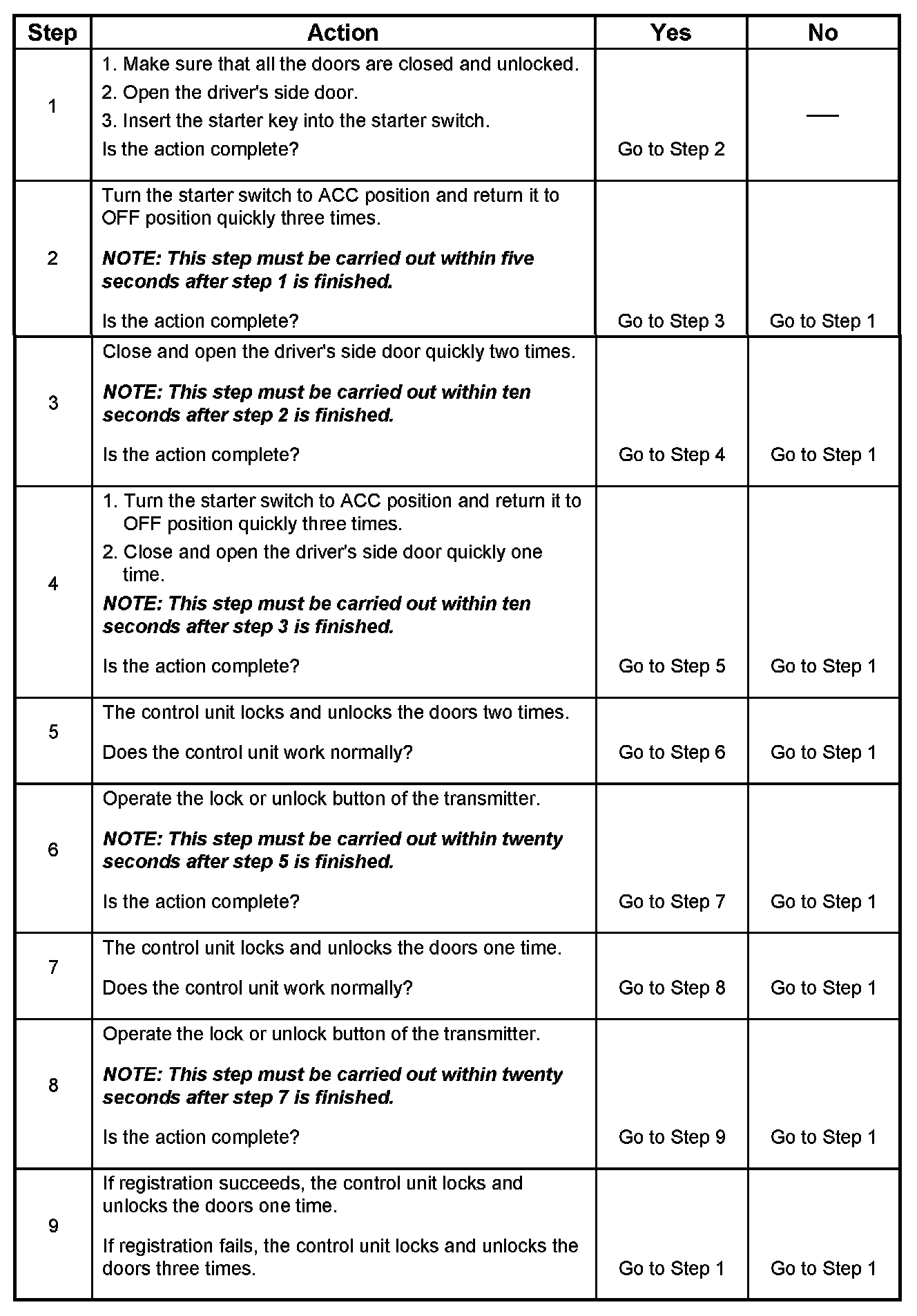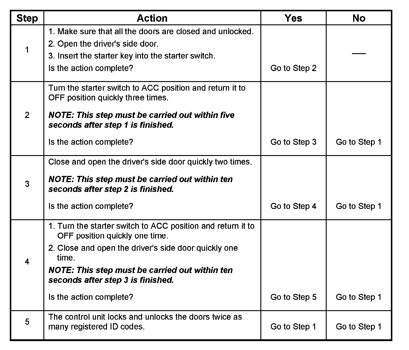 The following procedures are available to register keyless entry ID codes.