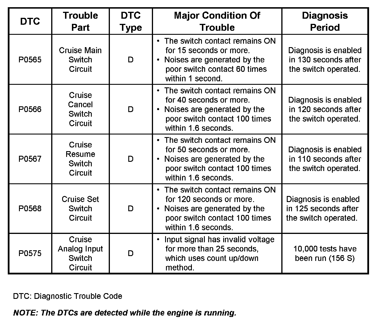 DiagnosisDTC P0565 - P0575: