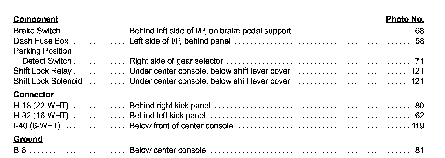 Shift Interlock System Index Image 138-1: