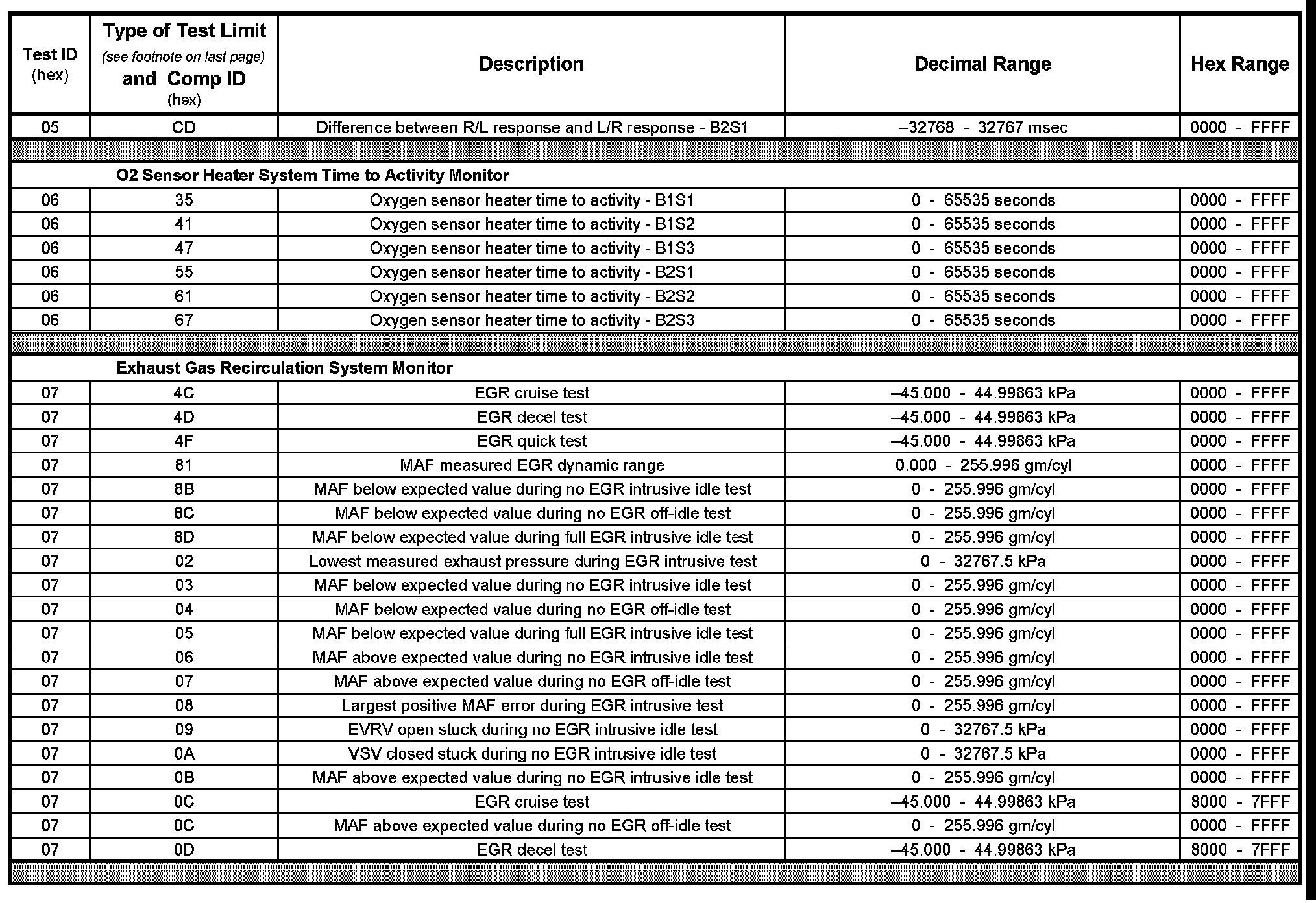 Mode $06 Data Definitions for Isuzu Vehicles Using J185O / Class2 Diagnostic Data Link