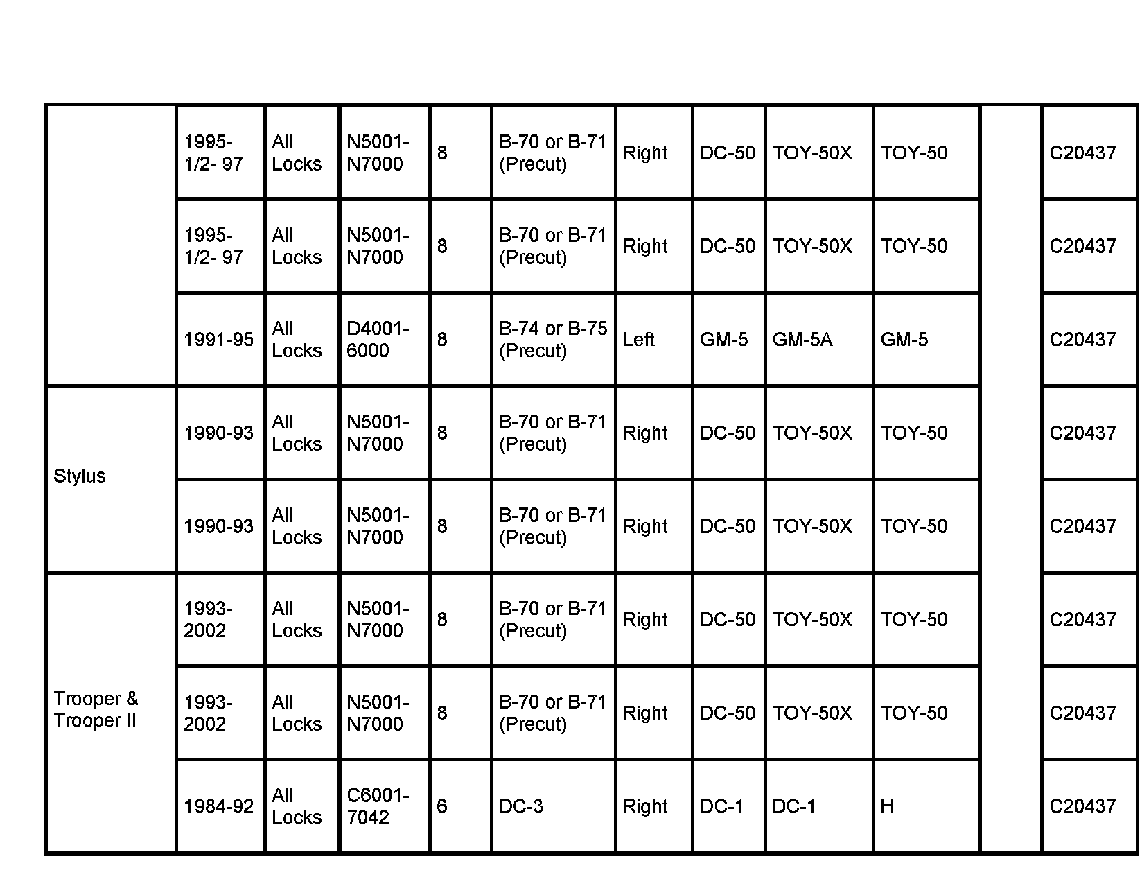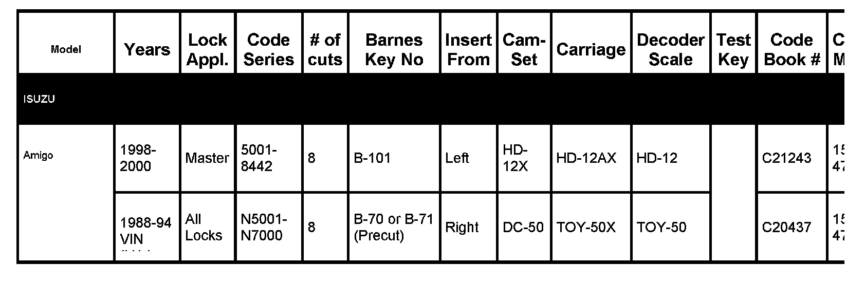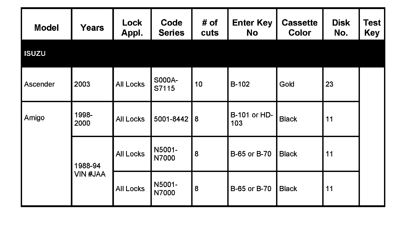 TSB SBO3-14-S001Curtis Key Code Cutter and Application Listing