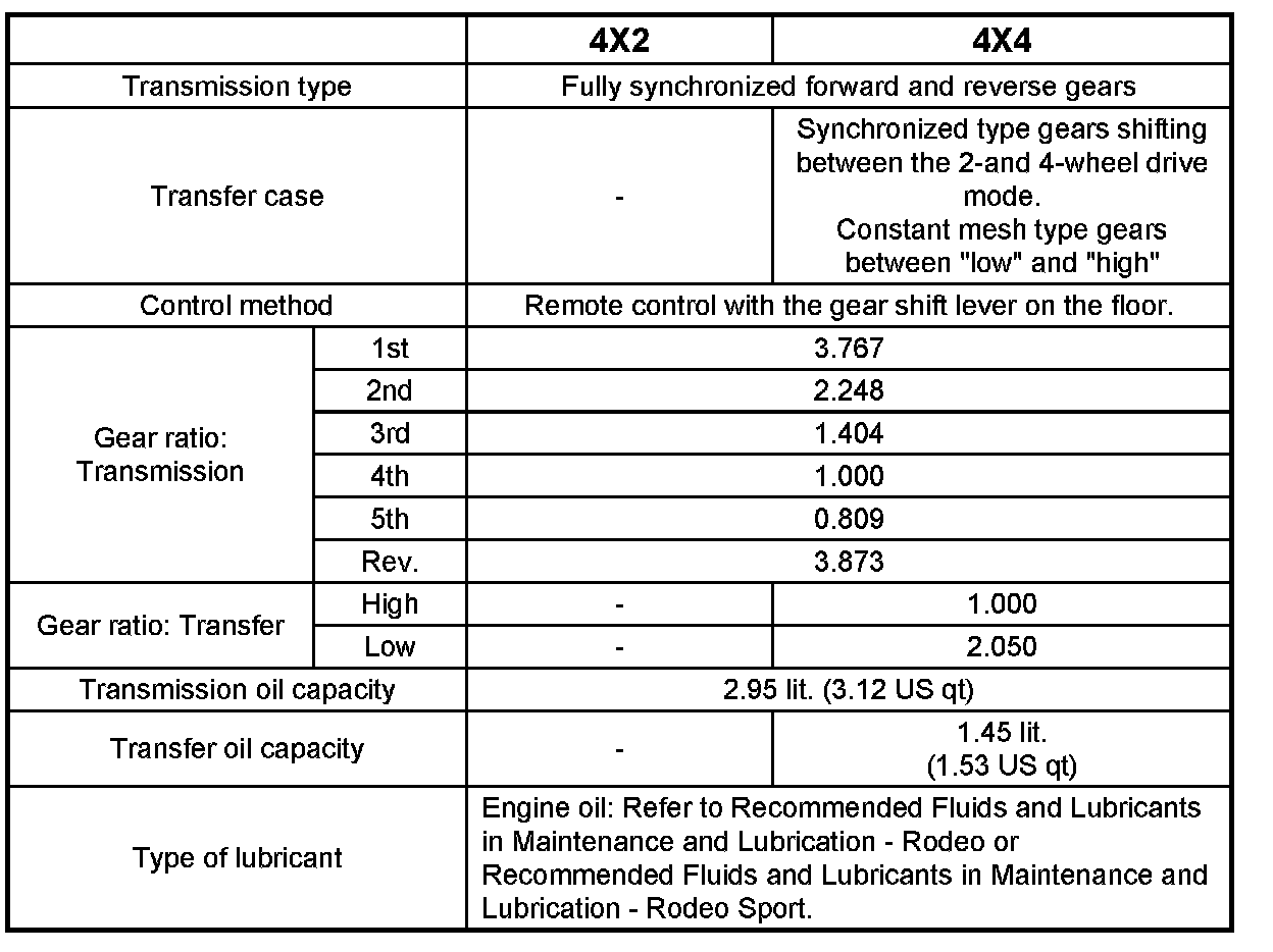 Home >> Isuzu >> 2003 >> Rodeo 2WD L4-2.2L >> Repair and Diagnosis >> Specifications >> Mechanical Specifications >> Manual Transmission/Transaxle
