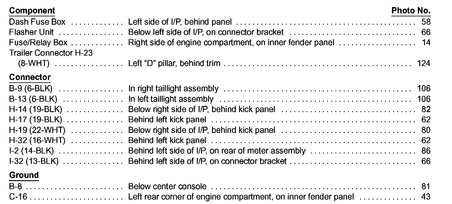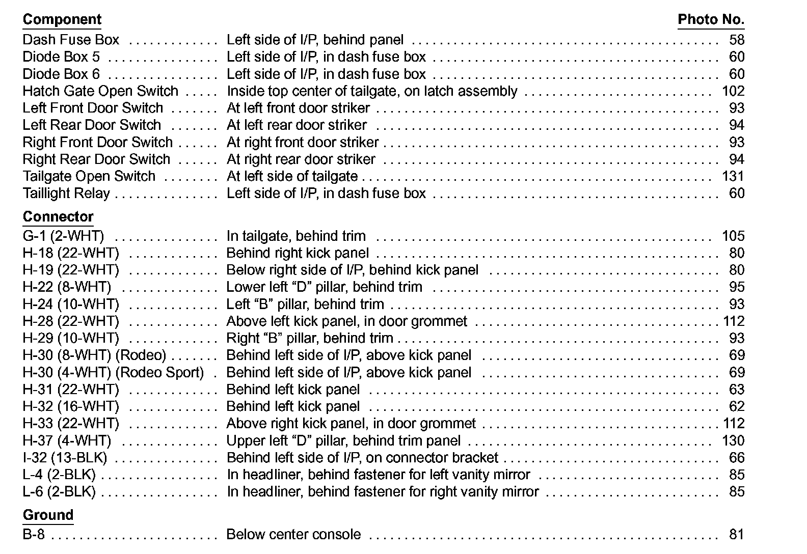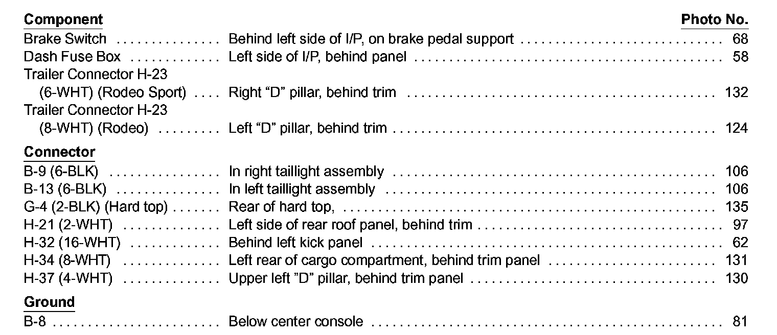 Home >> Isuzu >> 2003 >> Rodeo 2WD V6-3.2L >> Repair and Diagnosis >> Locations >> Component Locations >> Component List >> Lighting