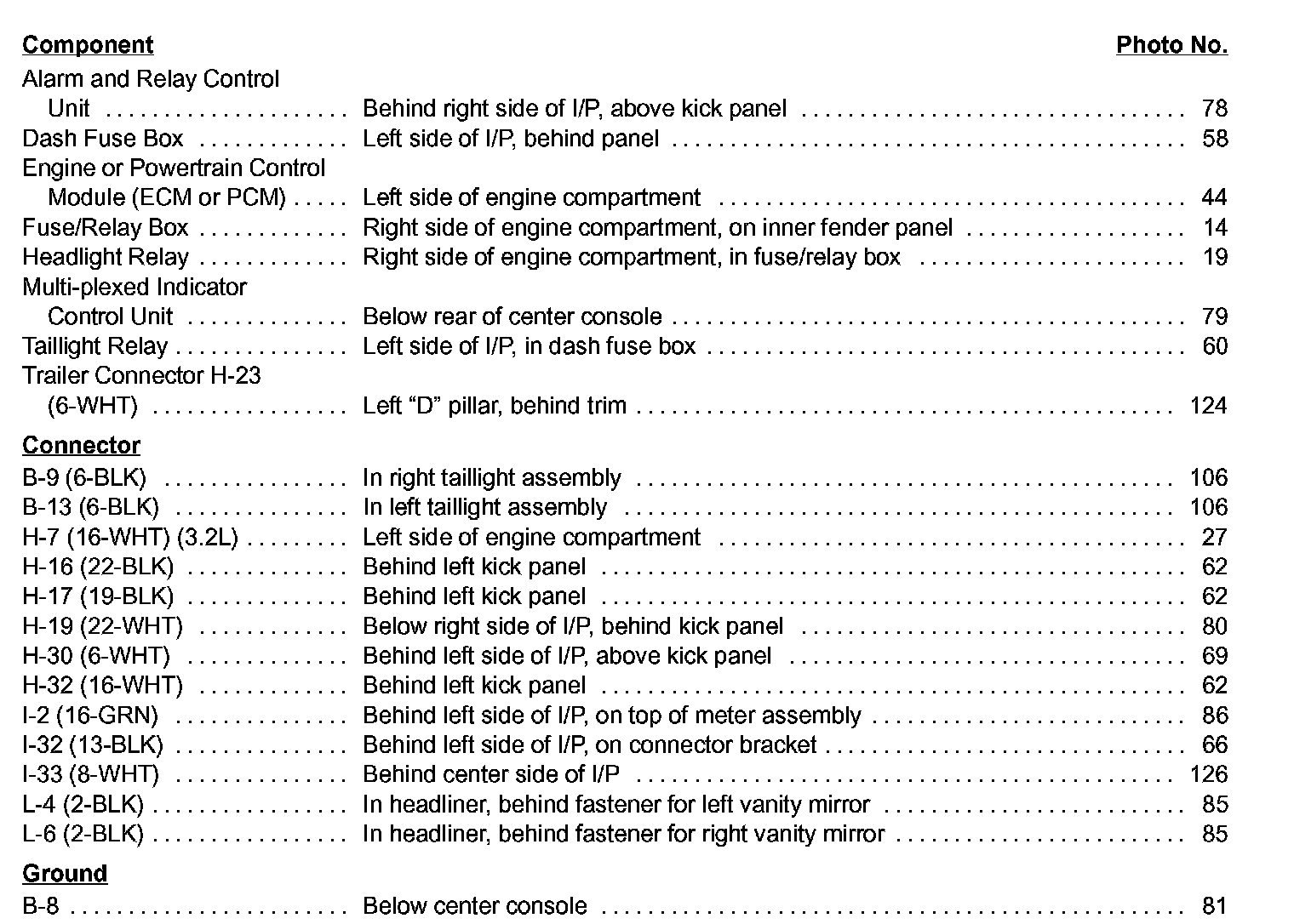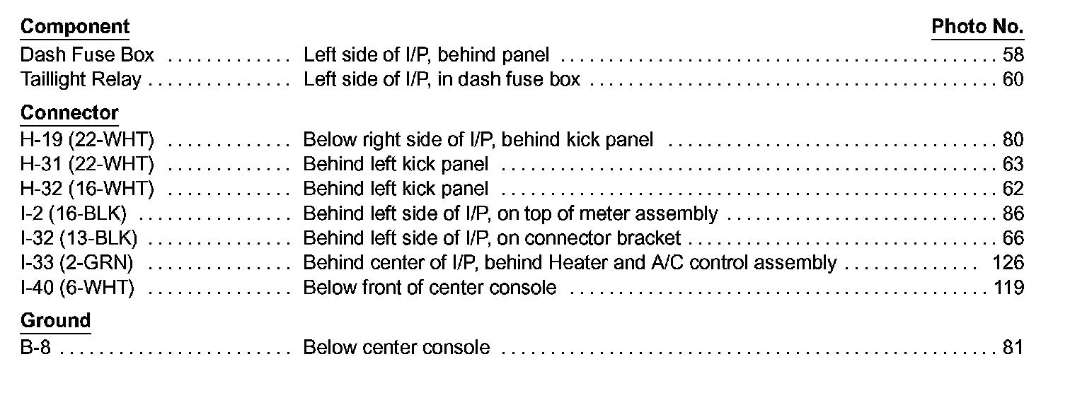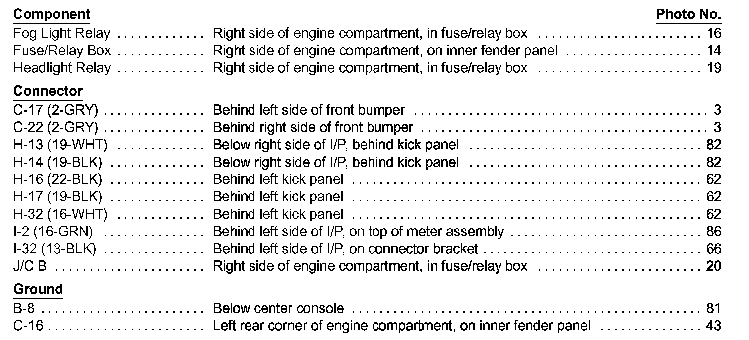 Home >> Isuzu >> 2003 >> Rodeo 2WD V6-3.2L >> Repair and Diagnosis >> Locations >> Component Locations >> Component List >> Lighting
