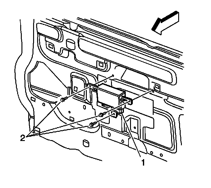 2. Remove the screws (2) retaining the rear body control module (BCM) (1) to the end gate.