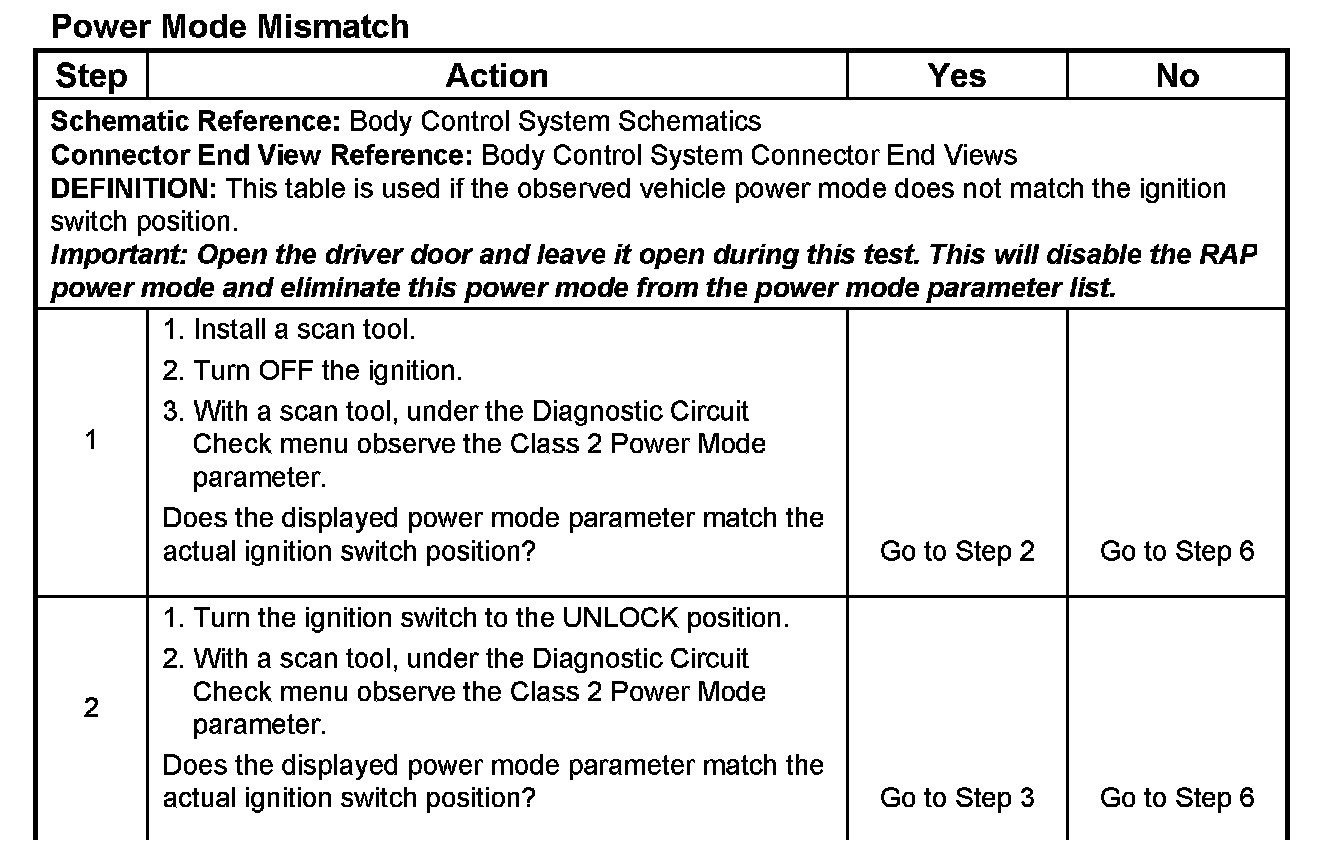 Home >> Isuzu >> 2004 >> Ascender 2WD L6-4.2L >> Repair and Diagnosis >> Powertrain Management >> Computers and Control Systems >> Body Control Module >> Testing and Inspection >> Symptom Related Diagnostic Procedures >> Power Mode Mismatch