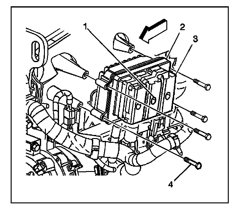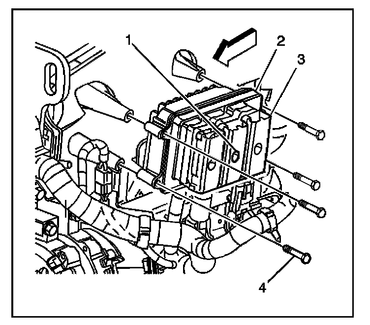 3. Remove the four PCM body mounting bolts (4).