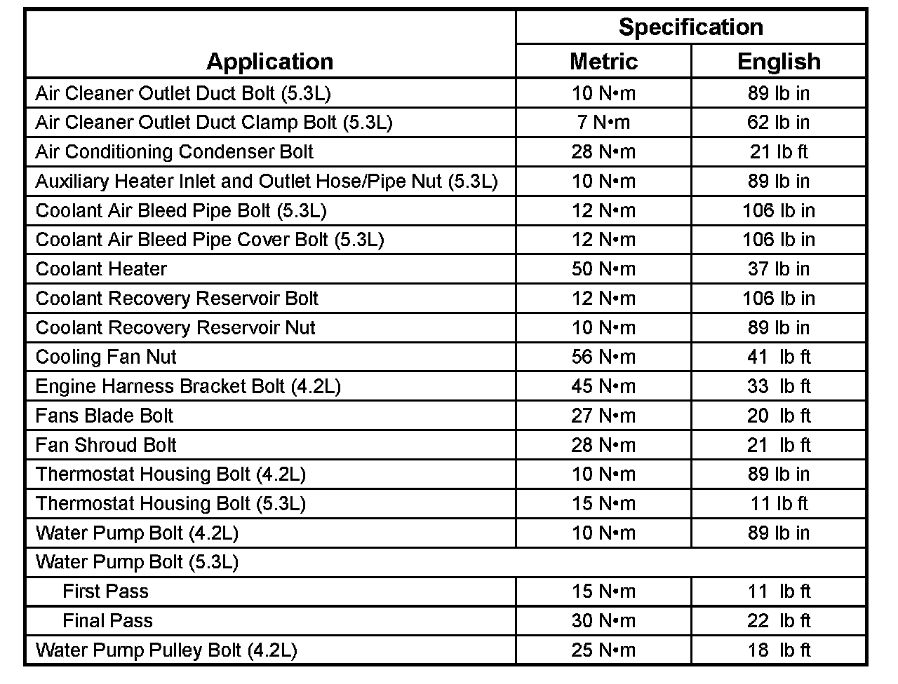 Fastener Tightening Specifications