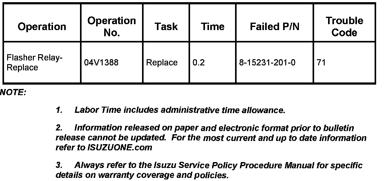 Home >> Isuzu >> 2004 >> Ascender 2WD L6-4.2L >> Repair and Diagnosis >> Technical Service Bulletins >> Recalls >> Safety >> Recall - Flasher Relay Module Replacement >> Overview