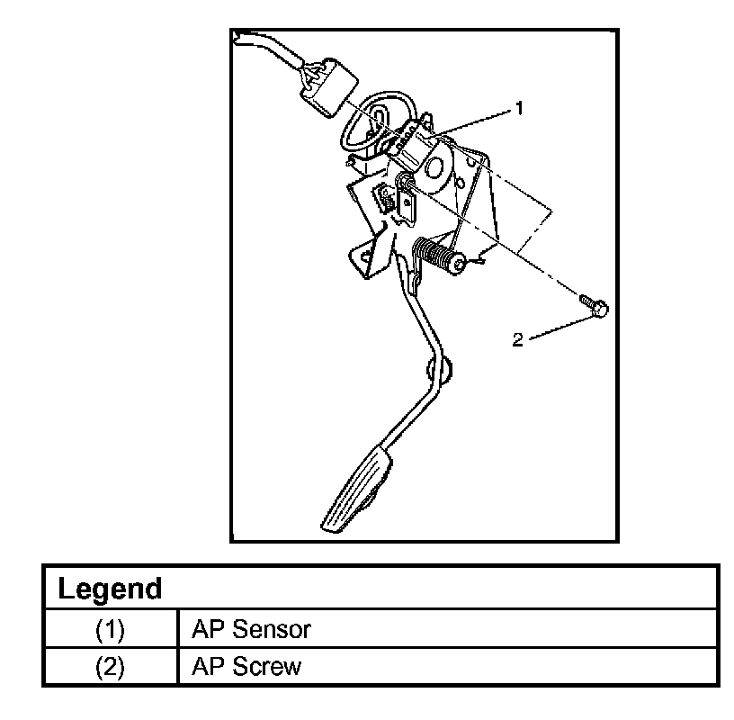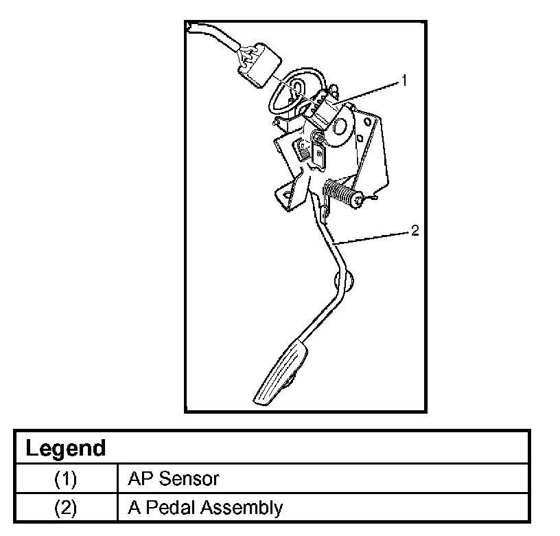 CAUTION: Remove the Accelerator (A) pedal assembly as a unit to have it serviced. Do not remove the Accelerator Position (AP) sensor on the A pedal. If the AP sensor is removed for emergency cause, refer to following items as necessary.