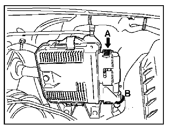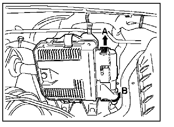 5. After removing the clip which fixes the ECM to the bracket, remove ECM.