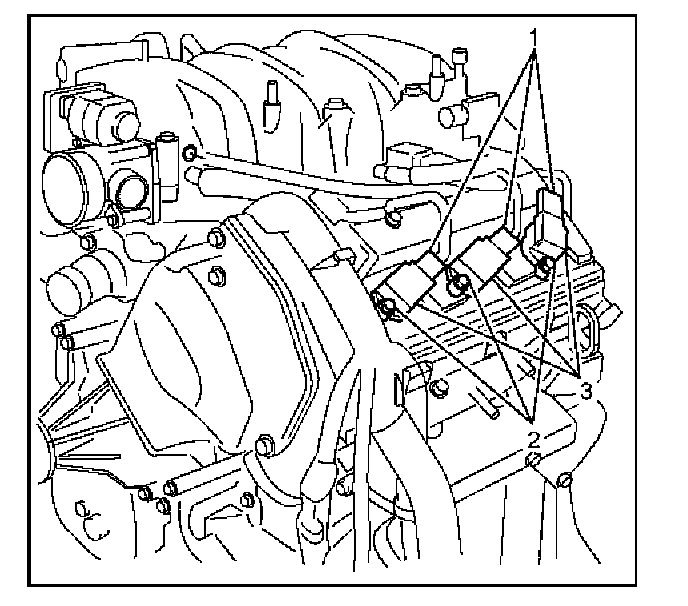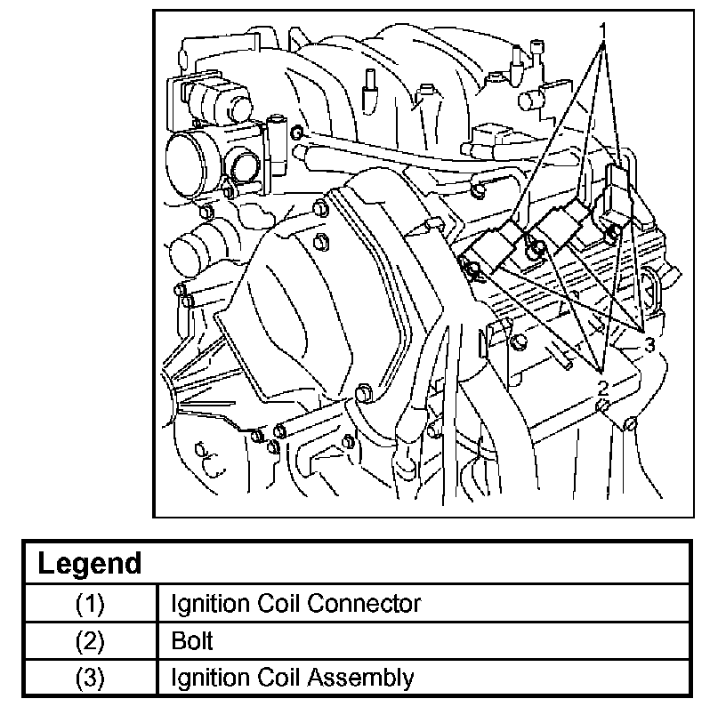 Connect ignition coil connector (1) and ignition coil (3), then tighten bolt (2) to the specified torque.