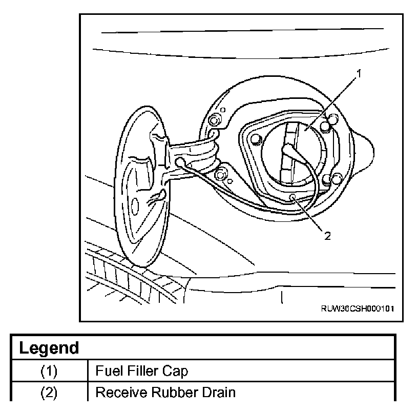 2. Remove Fuel filler cap(1).