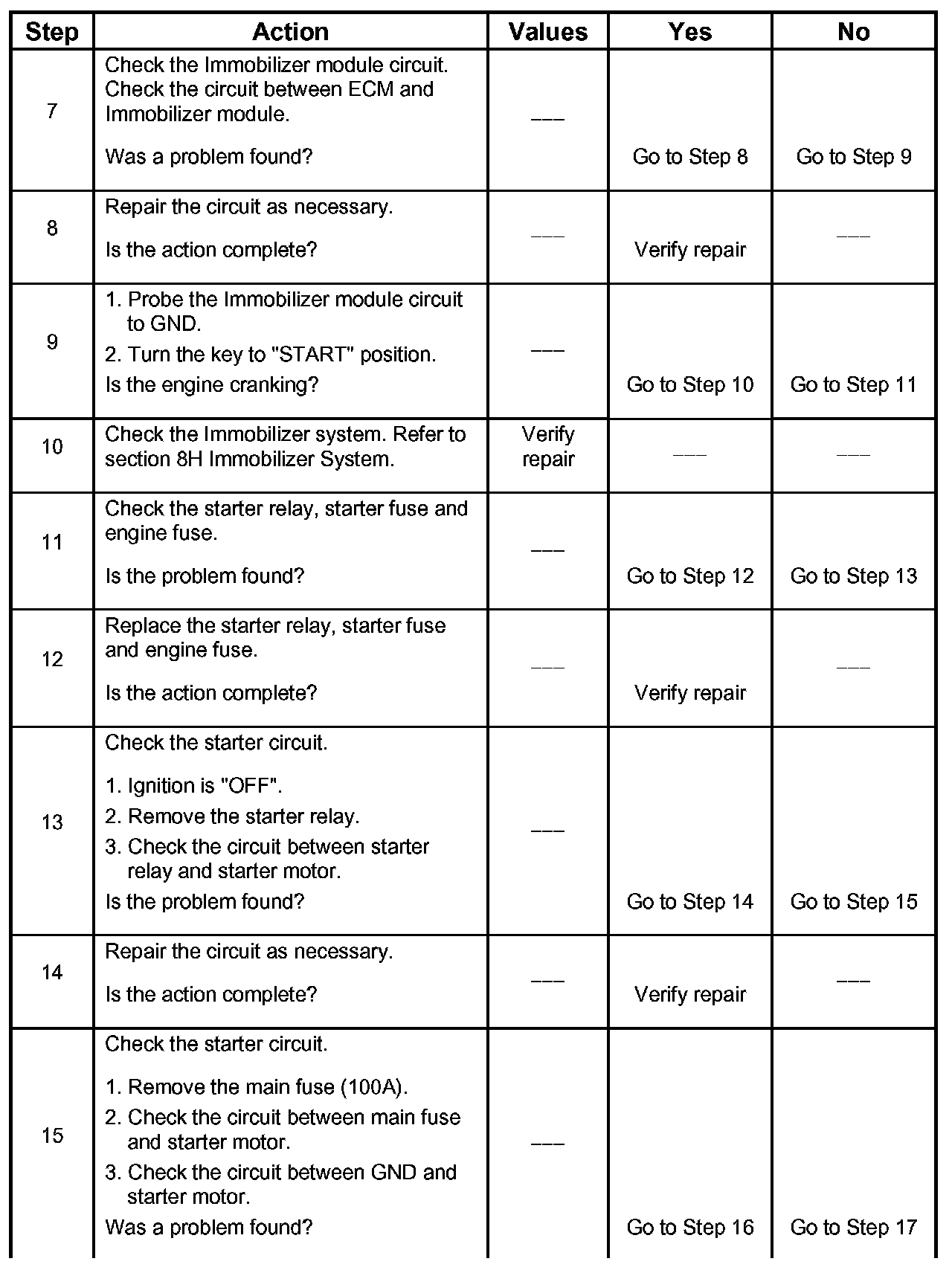 The starter motor is operated 5 to 12 seconds based on coolant temperature.