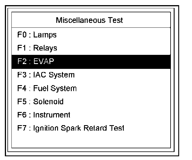 4. Select F2: EVAP Test in the Miscellaneous Test.