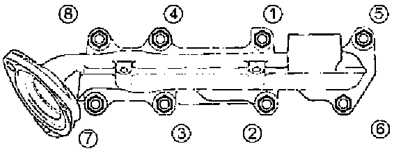 Install exhaust manifold and tighten exhaust manifold fixing nuts to the specified torque with new nuts.