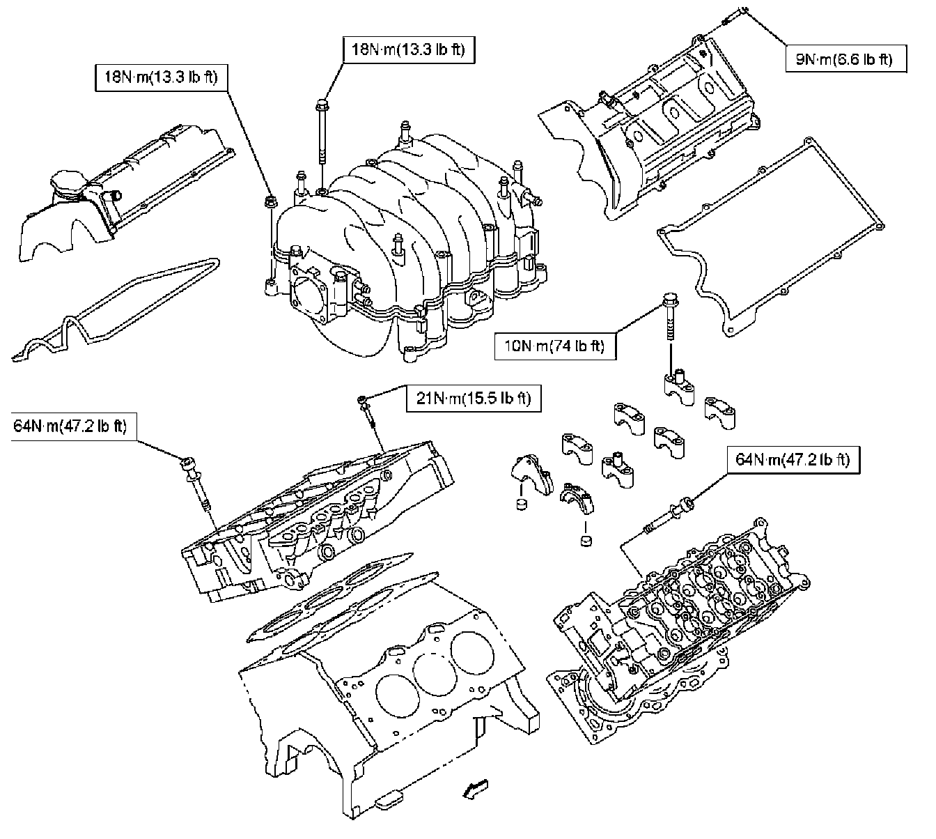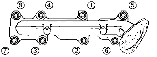 Install exhaust manifold and tighten exhaust manifold fixing nuts to the specified torque with new nuts.