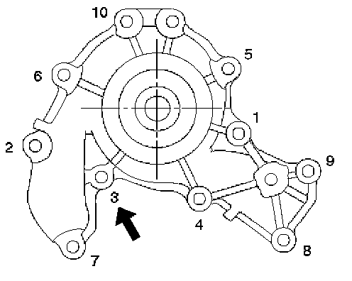 Install water pump assembly and tighten bolts to the specified torque.