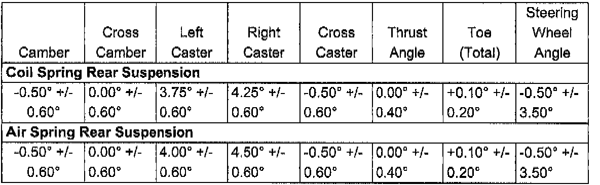 Wheel Alignment Specifications: